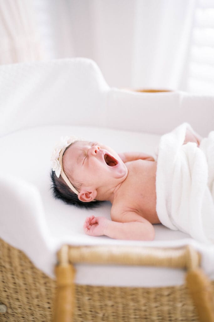 Newborn sessions usually last an hour to two hours. It all depends on how baby is feeling. You might want to do an outfit change for baby and we’ll have time for that. Or time to feed baby if he or she is getting fussy.